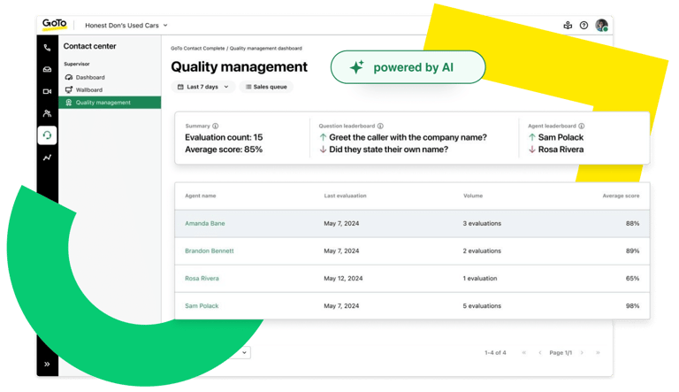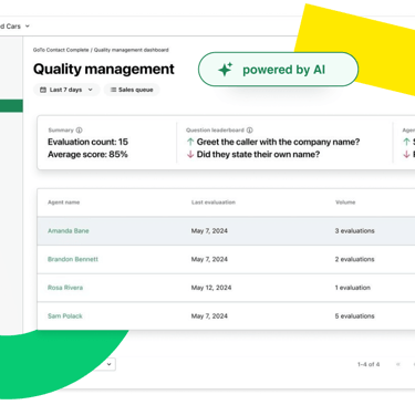 Transforme la supervisión de su operación con una solución de gestión de calidad potenciada por IA. Analice automáticamente interacciones, detecte tendencias y puntos de mejora, y empodere a los líderes a guiar al equipo hacia una experiencia del cliente excepcional — sin esfuerzo manual adicional.